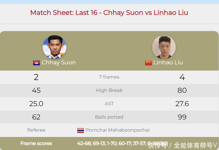两场中国德比战中,邢子豪在与小将刘昊林的比赛中施展欠安,0-4完败出局。而罗泽涛在与彭奕淞的比赛中,以4-2到手晋级。刘文炜在与泰国选手纳坦农-查伊库尔的比赛中,4-2到手晋级。